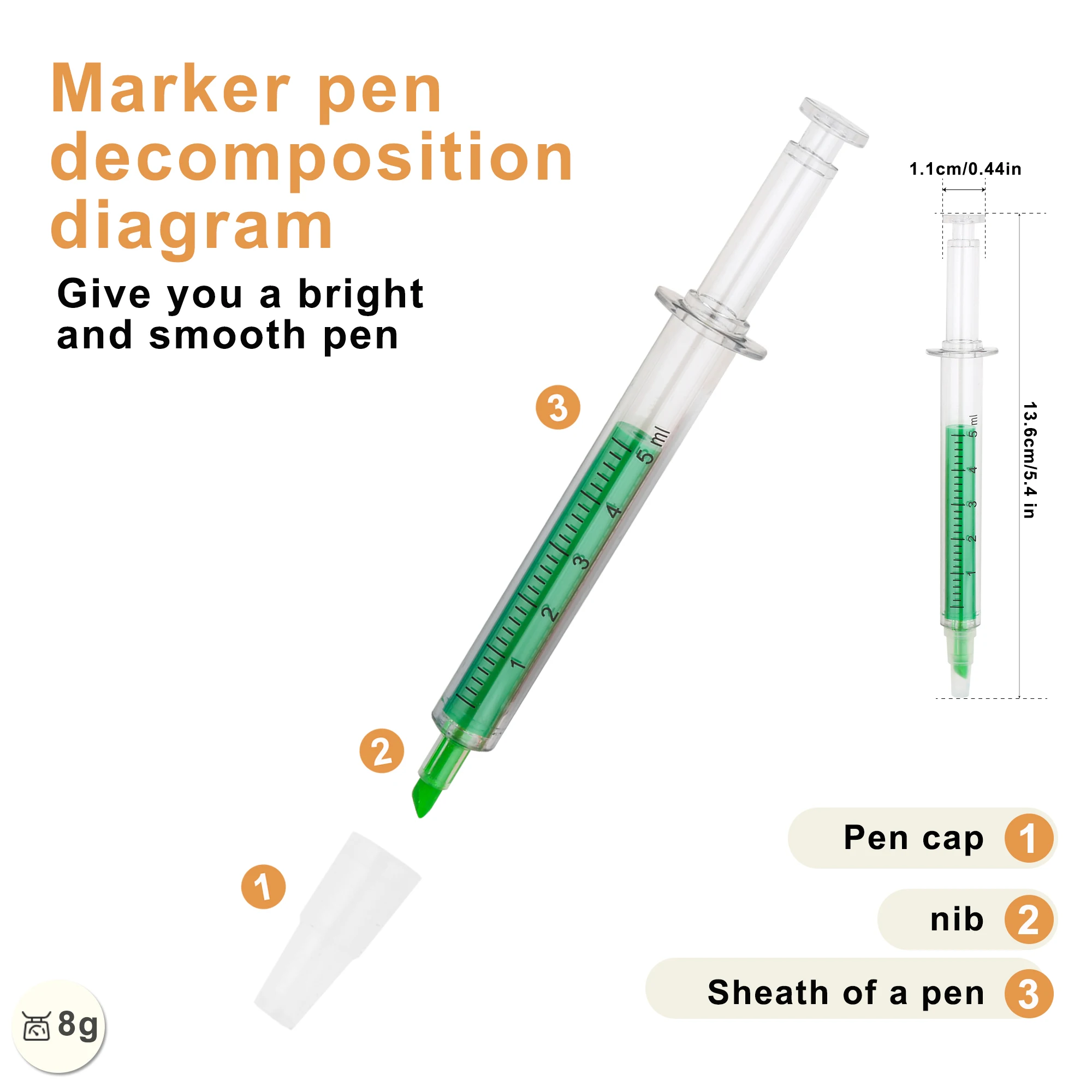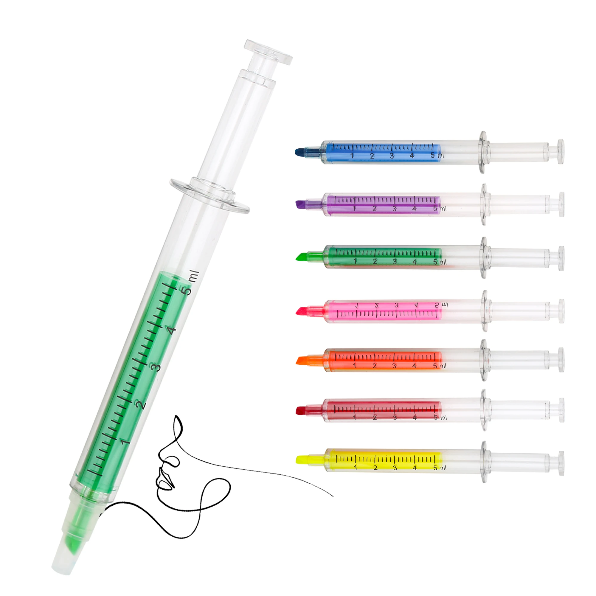 Promotional Multi-Colors Syringe-Shaped Highlighter Gel Pen With Custom Logo Printed for Nurses Student Favors School Supplies